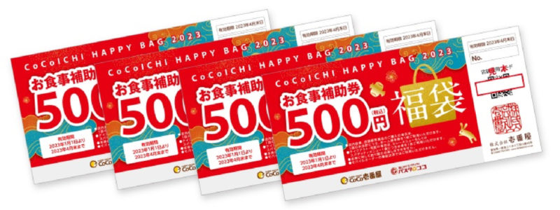 ●一部を除く「カレーハウス CoCo 壱番屋」「あんかけスパゲッティパスタ・デ・ココ」で使用でき、使用期限は2023年1月1日から4月末日まで