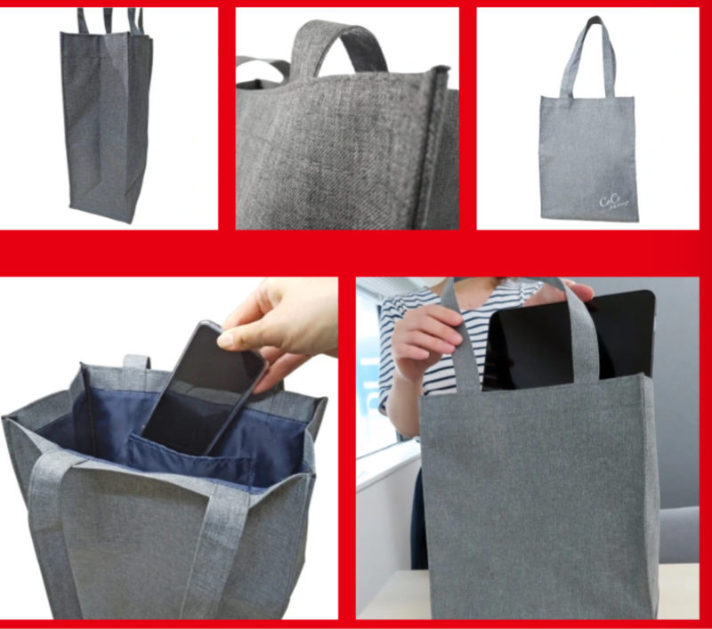 グレーカラーのA4サイズ縦型トートバッグは男女問わずご使用いただけます。