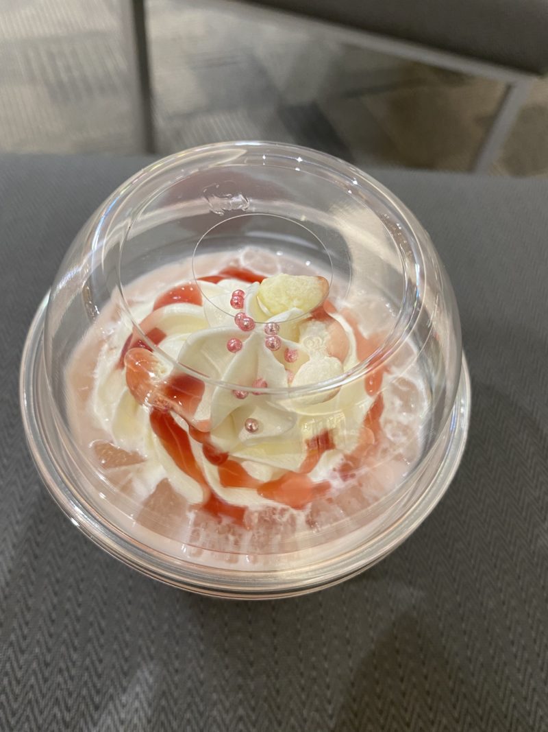 甘すぎず、いちごミルクみたいで、しかも最後には杏仁プリンという、最後まで美味しく飲めました🍹✨